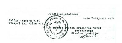 Stjepan Palčić, signature Stamp Ante Fabijanić, Signature
