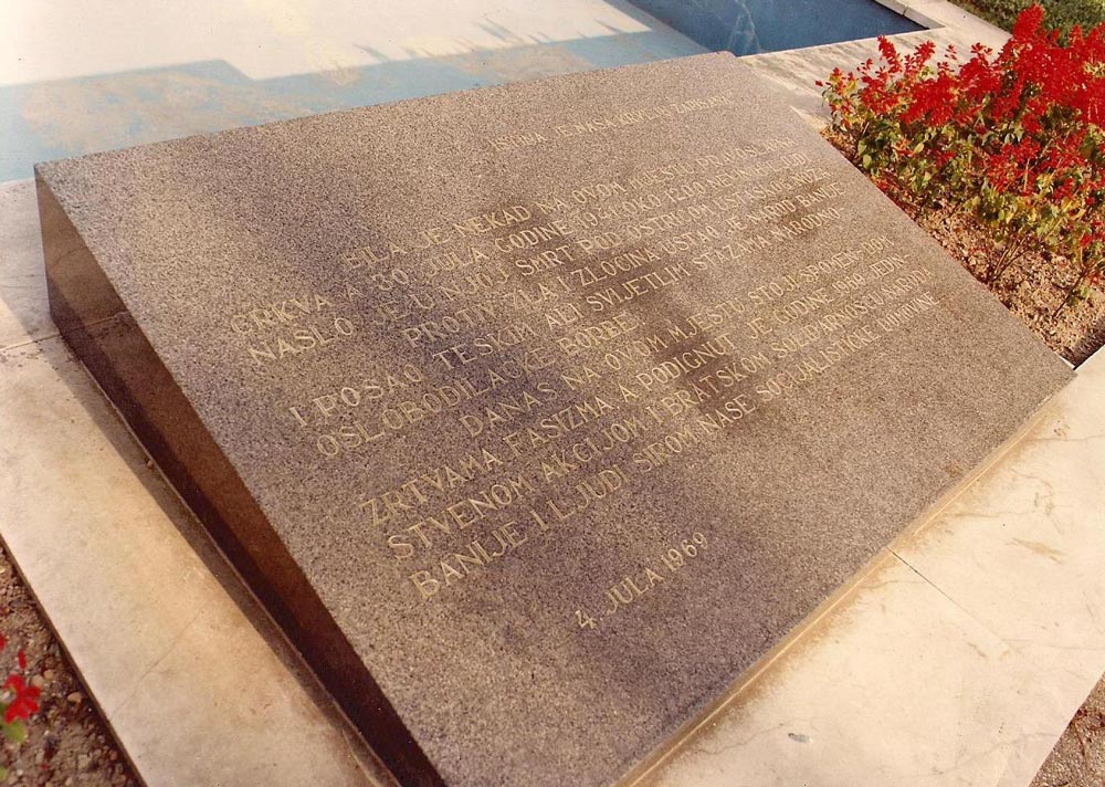 Na Ilindan 1995. godine zadušnu službu božiju služio je Njegova svetost patrijarh srpski gospodin Pavle. Tek postavljeno obilježje sa imenima identifikovanih žrtava bilo je dostupno javnosti samo nekoliko dana. Naišla je hrvatska vojska i u akciji „Oluja“ demolirala a zatim uklonila spomen-obilježje, a nova lokalna vlast Spomen dom preimenovala u „Hrvatski dom“. Tako su nestale i ploče s poimeničnim popisom 1.564 postradale žrtve u proljeće i ljeto 1941. godine iz Gline i njenog šireg područja.