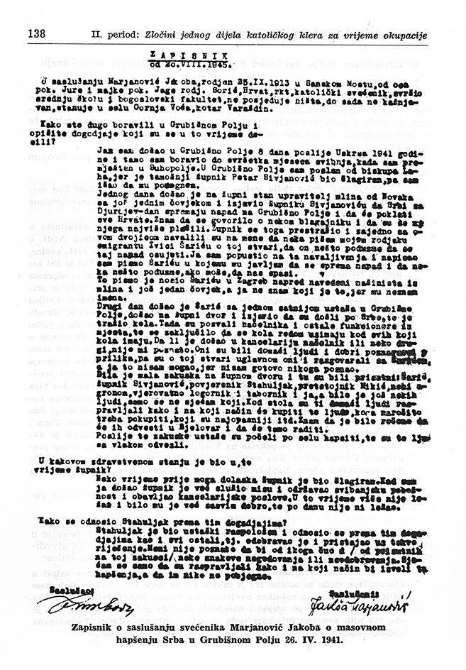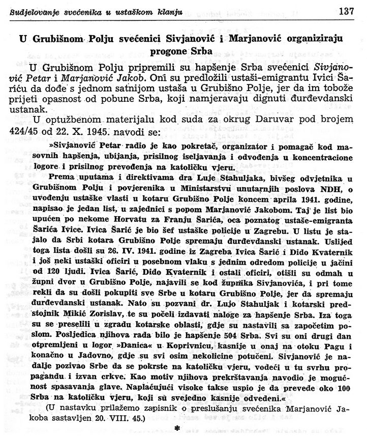 Тада су ухапшена 504 Србина. Отјерани су у Загреб, па у Копривницу, а затим у Госпић. Свугдје су тешко малтретирани, вријеђани и мучени. Сви су они касније, у јулу мјесецу 1941. године, поубијани у Јадовну на Велебиту.