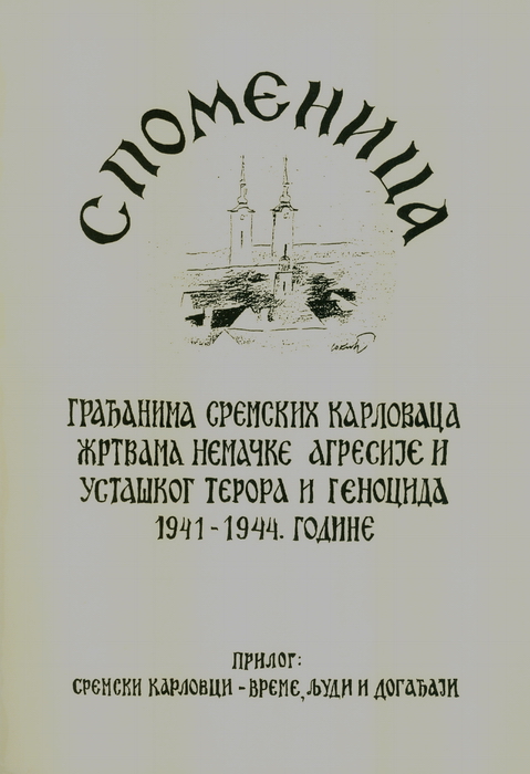 SPOMENICA građanima Sremskih Karlovaca žrtvama nemačke agresije i ustaškog terora i genocida od 1941- do 1944. godine / urednik Kosta Popović. – Sremski Karlovci : Izdavački fond Sv. Maksima Eparhije sremske, 1997 (Sremski Karlovci : Srpska manastirska štamparija). – 250 str.; 24 sm.