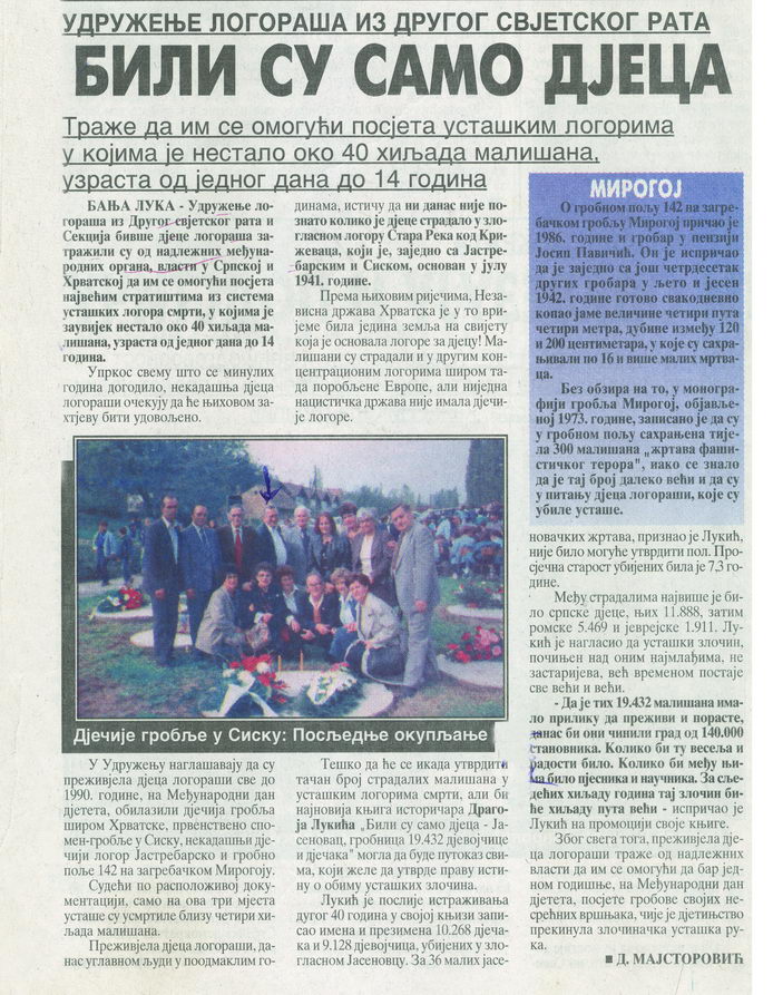 Poslednje okupljanje preživjele djece-logoraša na dječijem groblju u Sisku, oktobra 1990. godine