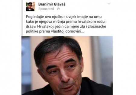 Главаш, данас лидер Хрватског демократског сабора Славониjе и Барање, обjавио jе статус у коjем, испод слике Пуповца стоjи: „Погледаjте ову њушку и увек имаjте на уму како jе његова мржња према хрватском роду и држави Хрватскоj jединица мере зла и злочиначке политике према властитоj домовини.“