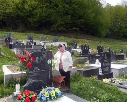 Маjка Нина Петровна поред гроба свог сина Олега у Милићима