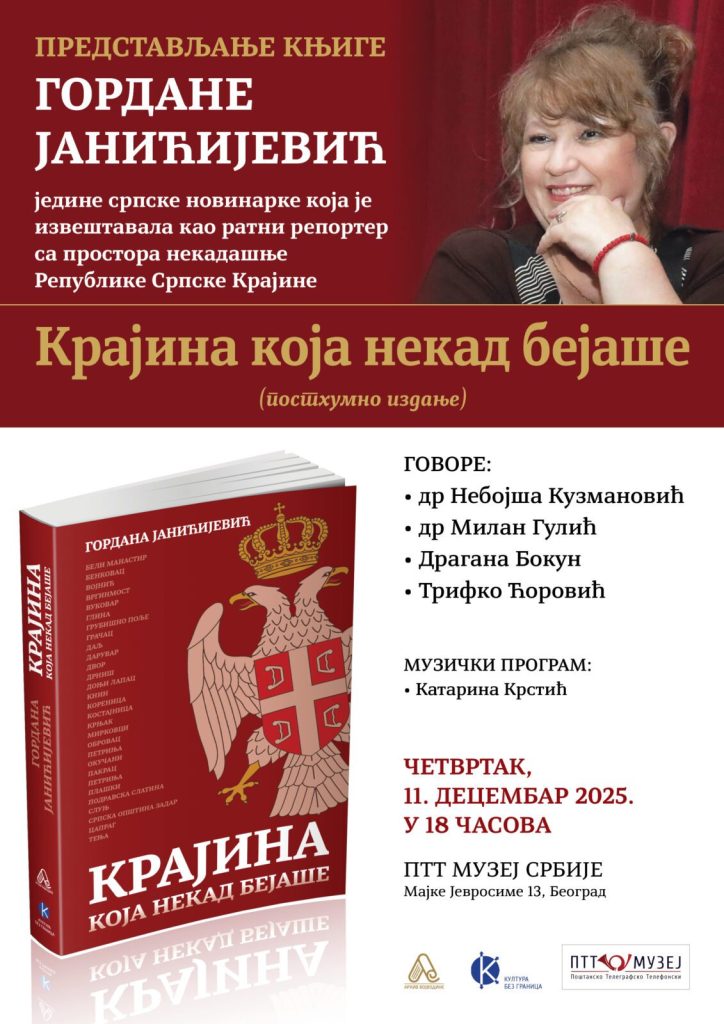 Недавно је постхумно објављена књига „Крајина која некад бејаше“, дјело преминуле београдске новинарке Гордане Јанићијевић. Издавачи – Архив Војводине и удружење „Култура без граница“ – уједно су и чувари јединственог свједочанства о времену распада Југославије, грађанског рата, настанка и слома Републике Српске Крајине и егзодуса стотина хиљада људи.