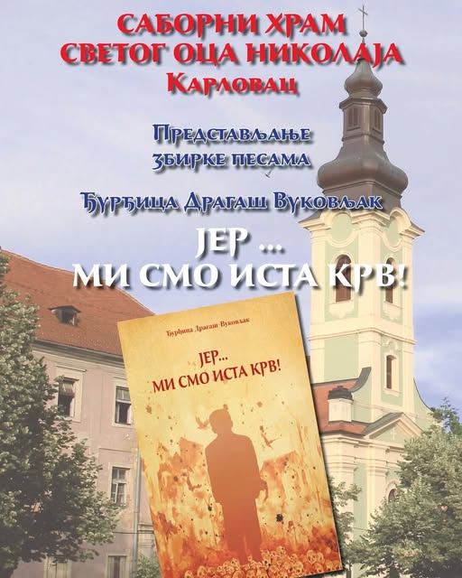 Дан уочи Дана сећања, у петак 20. јуна у 15 часова, у Карловцу промоција књиге Ђурђице Драгаш Вуковљак „Јер ми смо иста крв“: