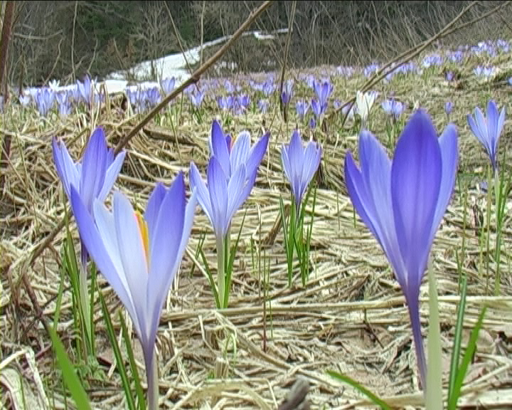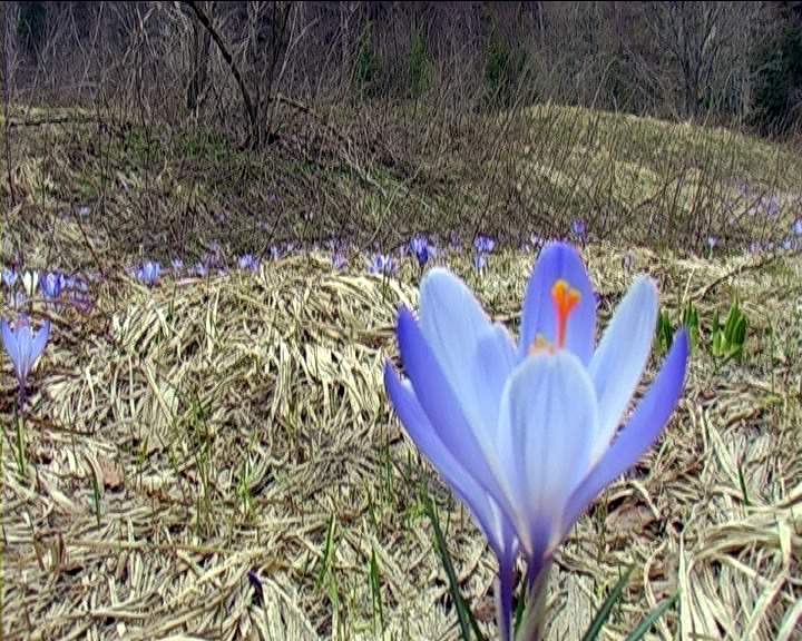 In order to hide it, someone covered the destroyed monument with rotting trees and branches. The whole area of the former camp was covered with blue saffron.