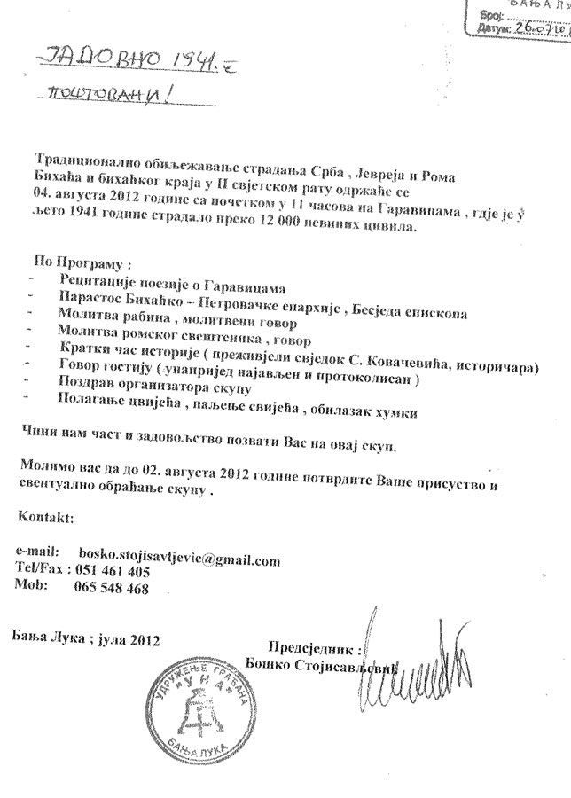Погледајте позив и кратак пригодан текст организатора поводом обиљежавања годишњице.