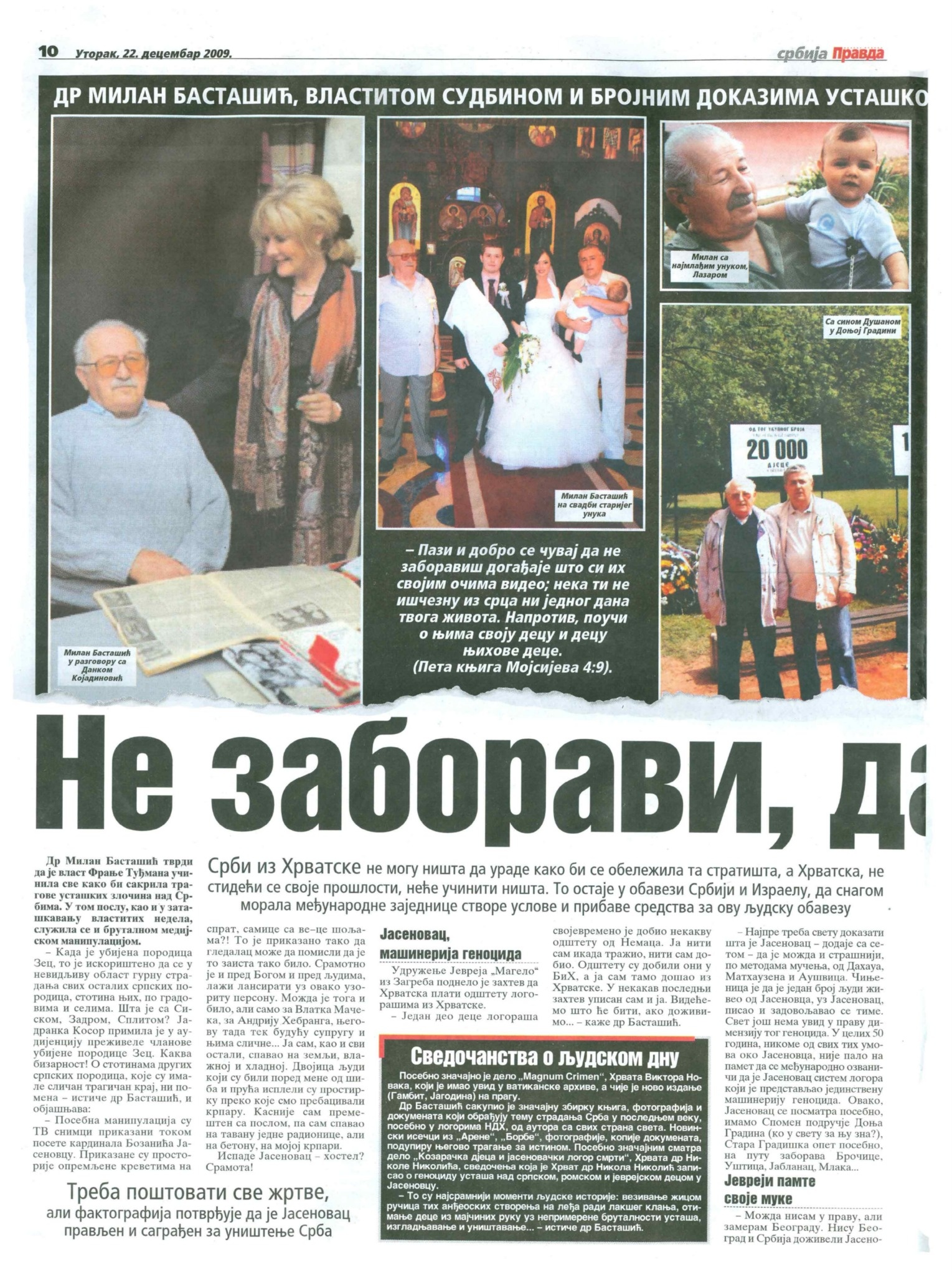 Др Милан Басташић, властитом судбином и броjним доказима усташког геноцида над Србима, сведочи о злочинима коjи никад нису кажњени