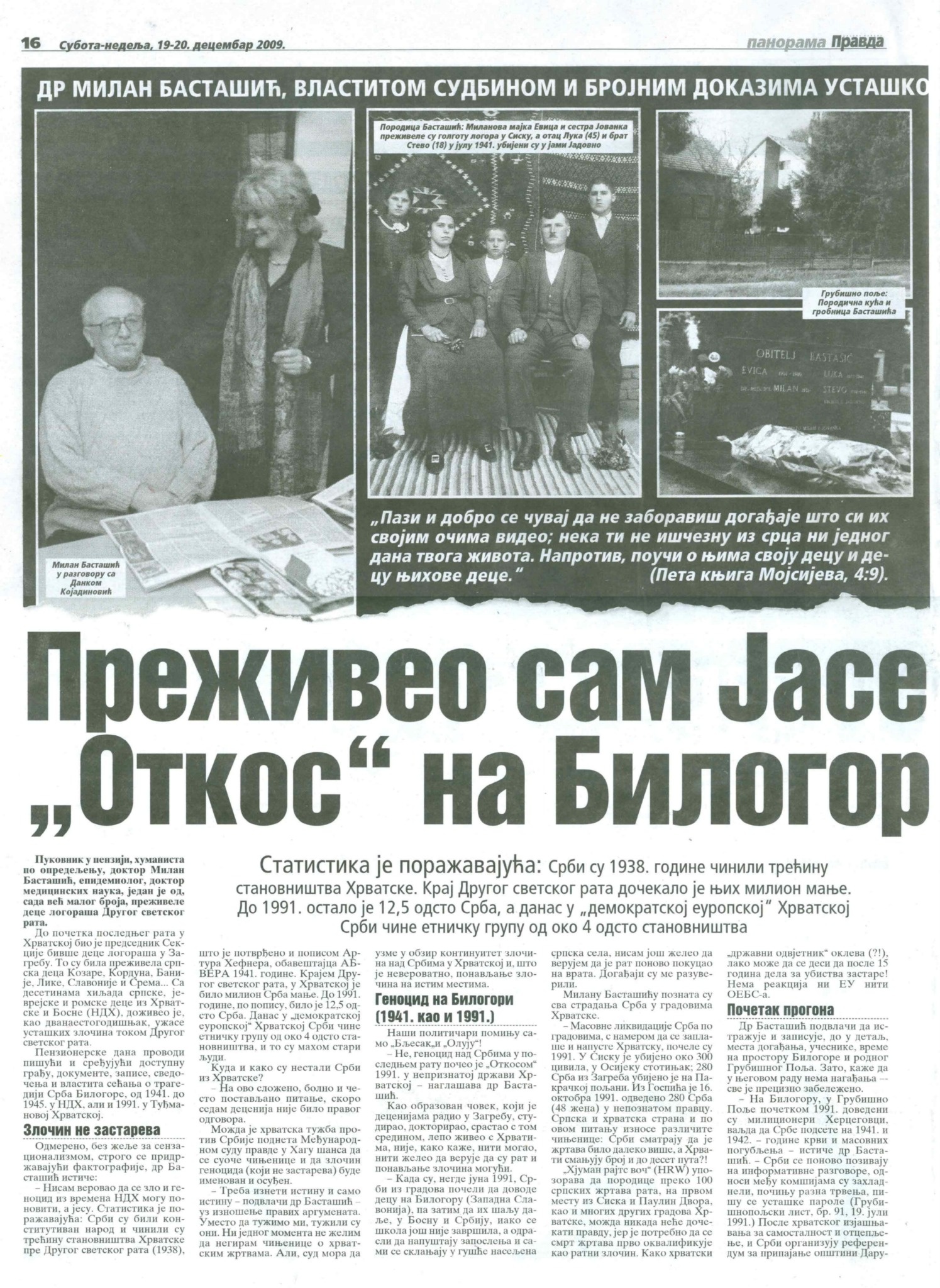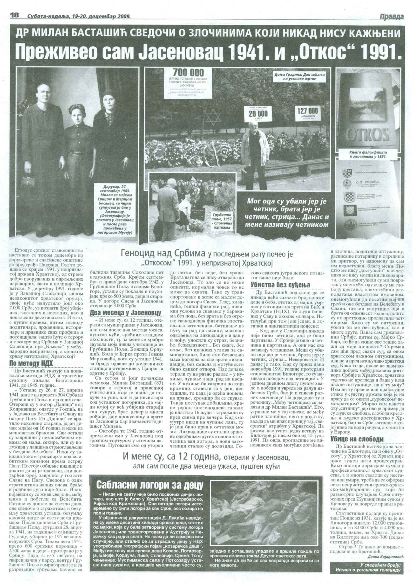 Др Милан Басташић, властитом судбином и броjним доказима усташког геноцида над Србима, сведочи о злочинима коjи никад нису кажњени