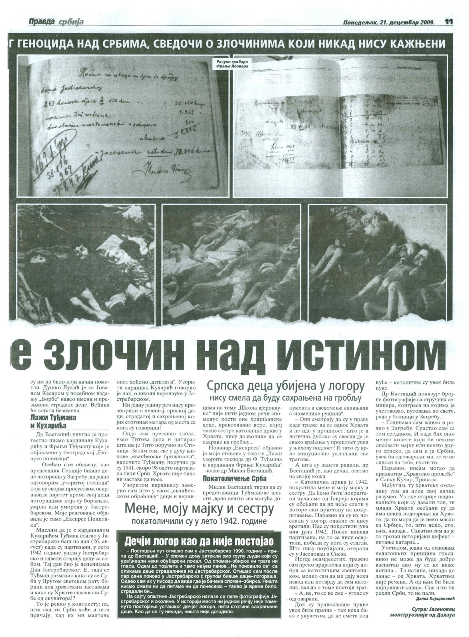 На питања о диjаметрално супротним виђењима преживелих Срба и хрватског естаблишмента и „Гласа Концила“ по питању дечjих логора у НДХ, др Басташић износи децениjама вагана размишљања.
