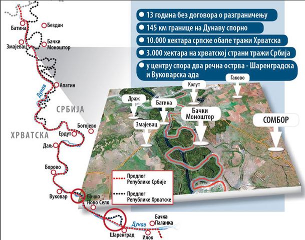 Stavovi o liniji granice duž 145 spornih kilometara reke Dunav, međutim, nisu pomereni ni za milimetar. Srbija se drži odluke iz 1945. po kojoj „linija“ između dve države ide Dunavom od mađarske granice do Iloka. Hrvati se ne slažu, jer je reka promenila tok, pa je, kažu, deo njihove zemlje ostao u Srbiji.