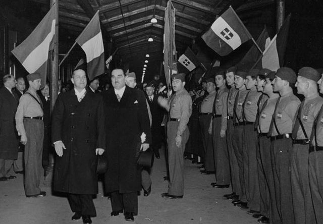 Милан Стоjадиновић дочекуjе грофа Ћана у Београду