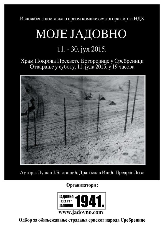 Одбор за обиљежавање страдања српског народа Сребренице и УГ Јадовно 1941. Бања Лука – Београд позиваjу Вас на отварање изложбе “Моjе Јадовно“, у суботу 11. jула 2015. године у 19 часова у Храму Покрова Пресвете Богородице у Сребреници.