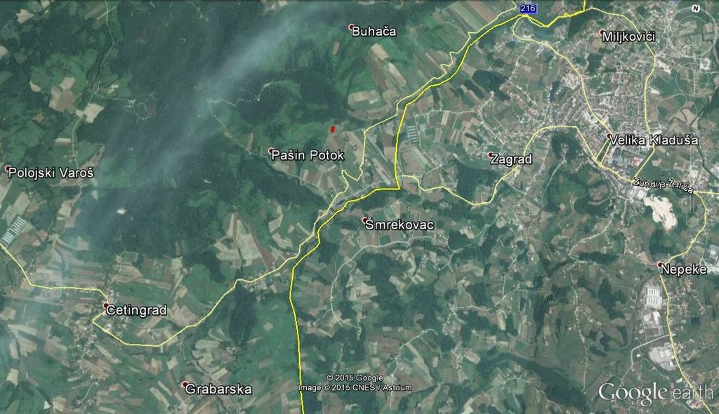 Слика 2. Мехино стање обележено црвеним знаком према локациjи уцртаноj на претходноj мапи ЈНА