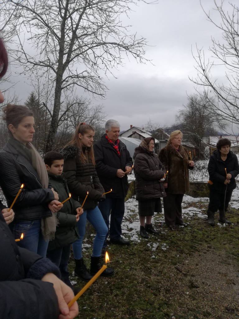 СЛАБИЊА – Протојереј Костајничко-Дубичке парохије Госп. Далибор Танасић служио је 16. децембра 2017. године парастос на девастрираној гробници, пострадалим Слабињцима у усташком покољу 16.12.1943. Служби парастоса присуствовала је родбина покланих и пријатељи. На мјесту покоља подигнут је пчелињак.