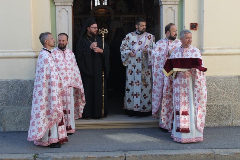 Светом Архијерејском Литургијом началствовао је Његово Преосвештенство Епископ горњокарловачки г. Герасим, уз саслужење: протојереја-ставрофора Јеленка Стојановића, протојереја-ставрофора Радослава Анђелића, протојереја Милана Симића, протојереја Саше Умићевића и ђакона Будимира Кокотовића. По прочитаном одломку из Јеванђеља, присутним вјерницима бесједом се обратио игуман Георгије (Станковић), говорећи о значају свједочења Васкрслог Христа и мученичком страдању свештеномученика Саве (Трлајић), Епископа горњокарловачког.