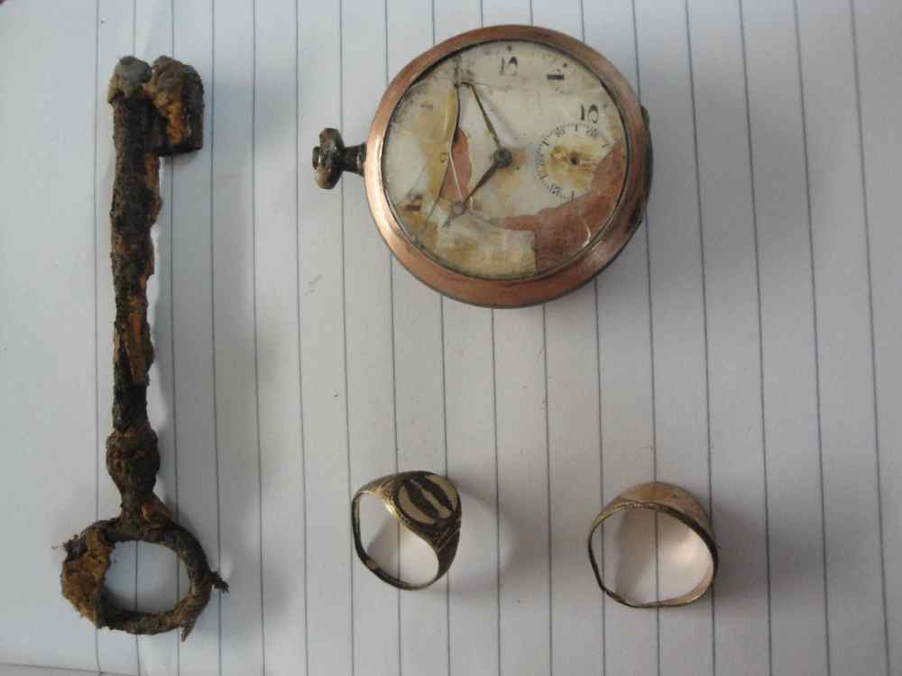 Током слагања моштију, пронађен је и један део личних предмета страдалих, који је пронађен 1991. године када су кости вађене из јама ливањског поља.