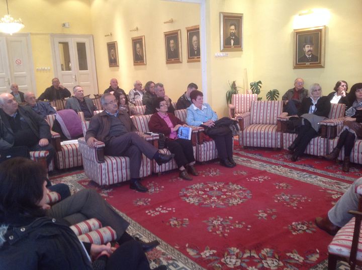 Домаћин се држи протокола. Иза поздравне бесједе и добродошлице Србима из дијаспоре почиње „Округли стол о ћирилици“. Излазе говорници. Има нас од свакуда. Бијељина, Шамац, Соколац, Дервента, Вуковар, Власеница, Вршац, Франкфурт, Теслић, Горњи Милановац…