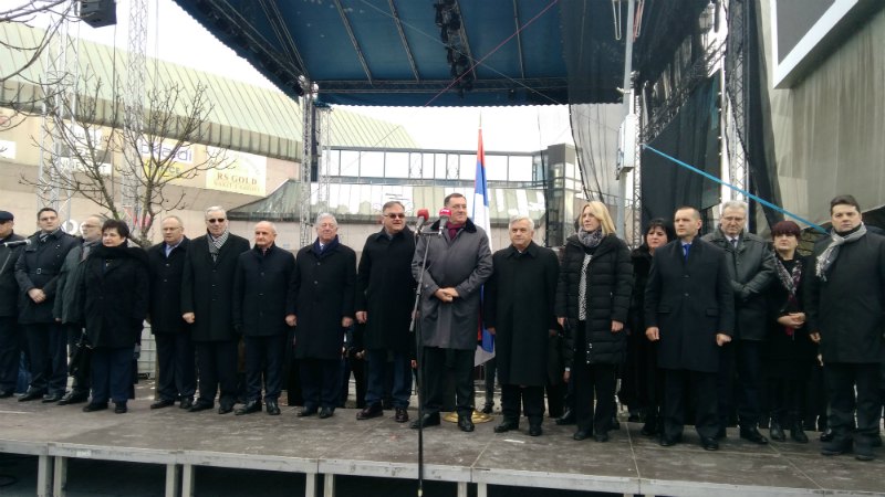 Предсједник Републике Српске Милорад Додик обратио се присутнима на Тргу Крајине, истакавши да су данас окупљени у јединству сви који воле Републику Српску и да данашњи дан представља посебан дан српског јединства и односа према Републици.
