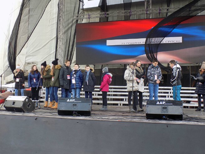 Директор Основне школе „Змај Јова Јовановић“ Дијана Богдановић рекла је да су радо прихватили позив предсједника Републике Српске Милорада Додика да учествују на прослави. Богдановићева, која је и координатор овог културно-образовног програма, рекла је да је данашње обиљежавање свечани, али и емотивни догађај.