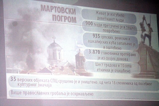 Академија поводом годишњице погрома одржана је након што је у манастиру Грачаница служен парастос за све страдале, те положене бијеле руже на умјетничку инсталацију „Мисинг“, споменику жртвама.